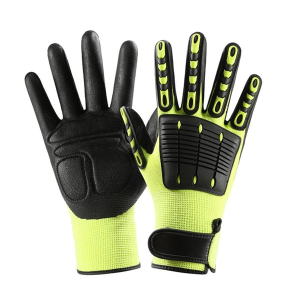 Zoleker Work Gloves TPR Impact Resistant Puncture Cut Resistant Touchscreen Capable Non-Slip Heavy Duty Mechanic Tactical Gloves with Impact Protection & Vibration Absorption (Green & Black, Large)