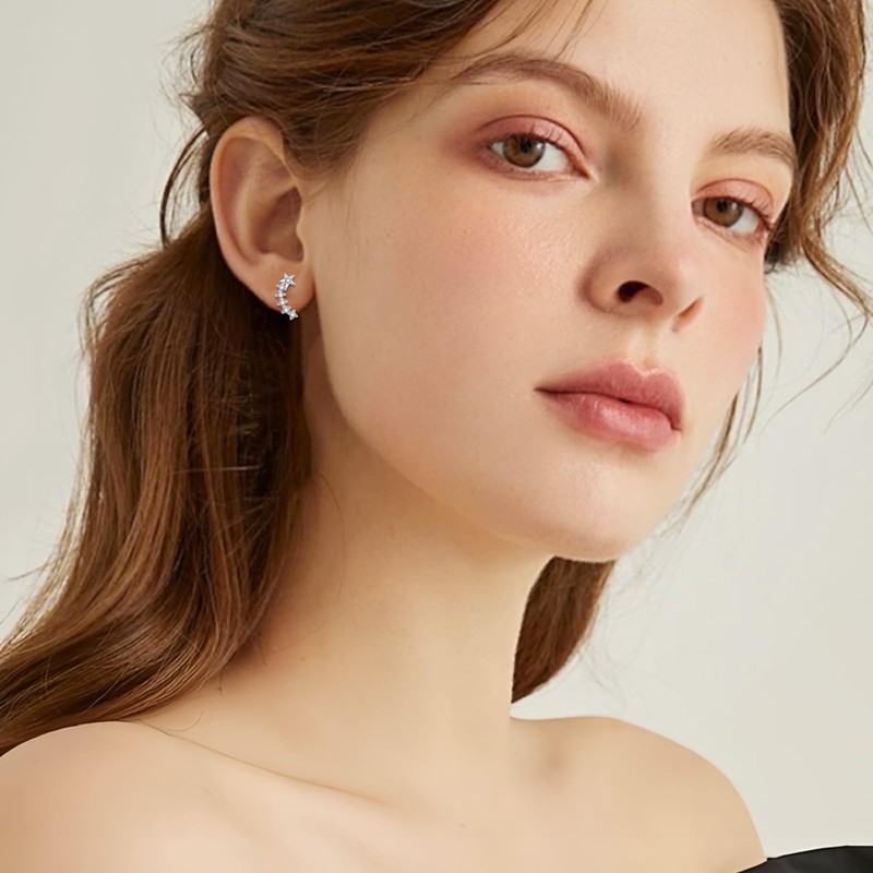 High Quality Materials --- The material of the women star stud earrings is made of high quality 925 silver, hypoallergenic, nickel-free, non-toxic,for sensitive skin. The main part is inlaid with cubic zirconia, which are as sparkling and remarkable as diamonds and attract attention.