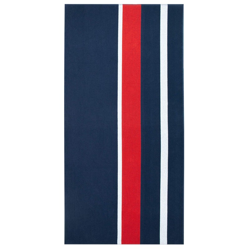 ZOLLNER Beach Towel Large 100 x 200 cm Cotton Stripes Dark Blue Red