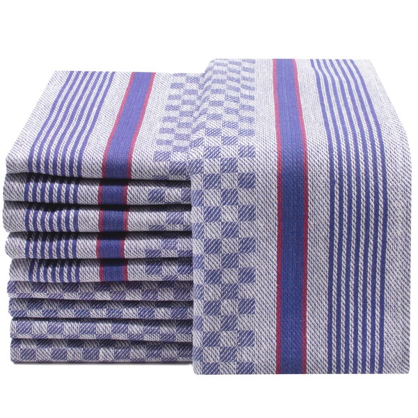 ZOLLNER Set of 10 Tea Towels 45 x 90 cm Cotton Blue Checked