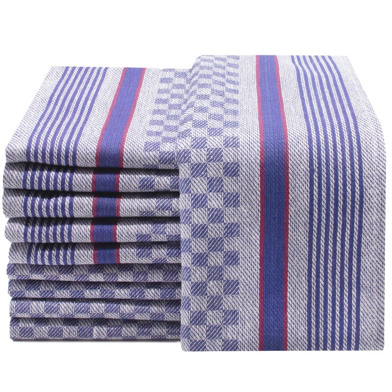 - The blue chequered kitchen towels are made from 100% cotton made from single yarn and have a weight of 178 g/m², which makes them extremely absorbent and durable. They are 45 x 90 cm in size and have been equipped with a hanger.