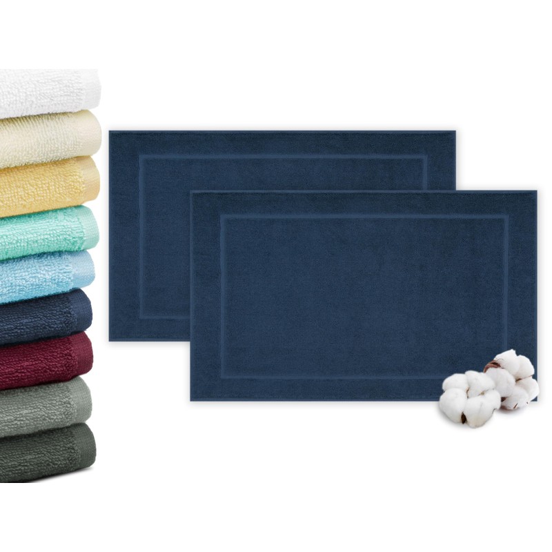 ZOLLNER Set of 2 bath mats in 50 x 70 cm, absorbent and soft bath mats in dark blue, pleasant massage effect, washable up to 60 °C, suitable for underfloor heating, cotton, hotel quality