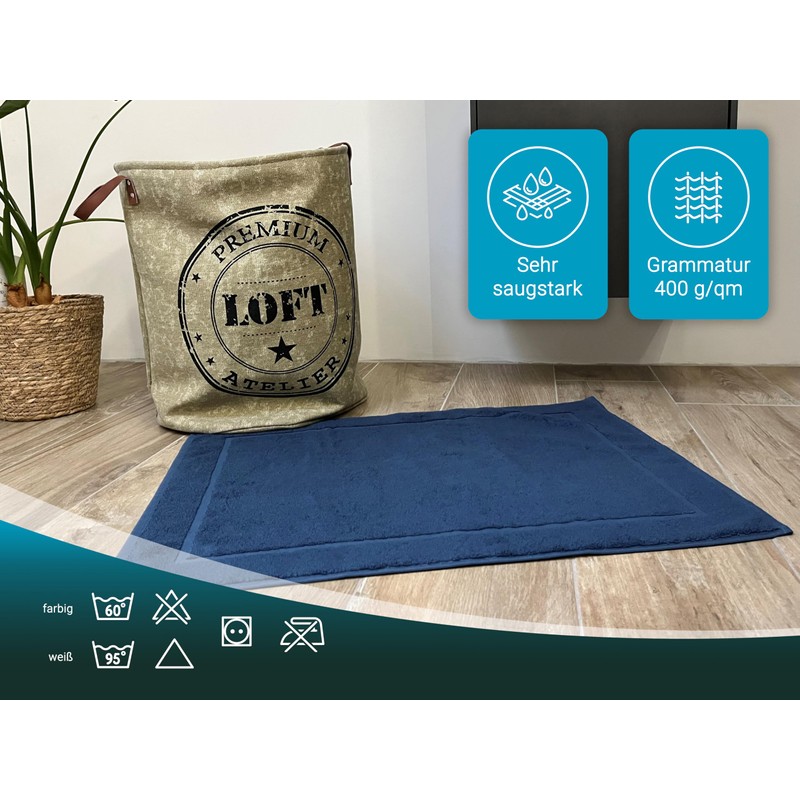 - High-quality material – the small rugs are made from 100% cotton with a material weight of approx. 600 g/m² which has been processed into durable two-ply terry cloth. Two-ply terry cloth is very absorbent and has a pleasant massage effect.