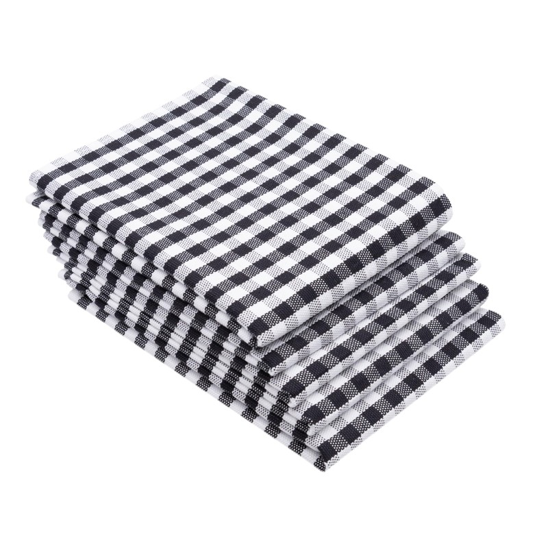 ZOLLNER Set of 5 Tea Towels with Checked Pattern, 100% Cotton, Black