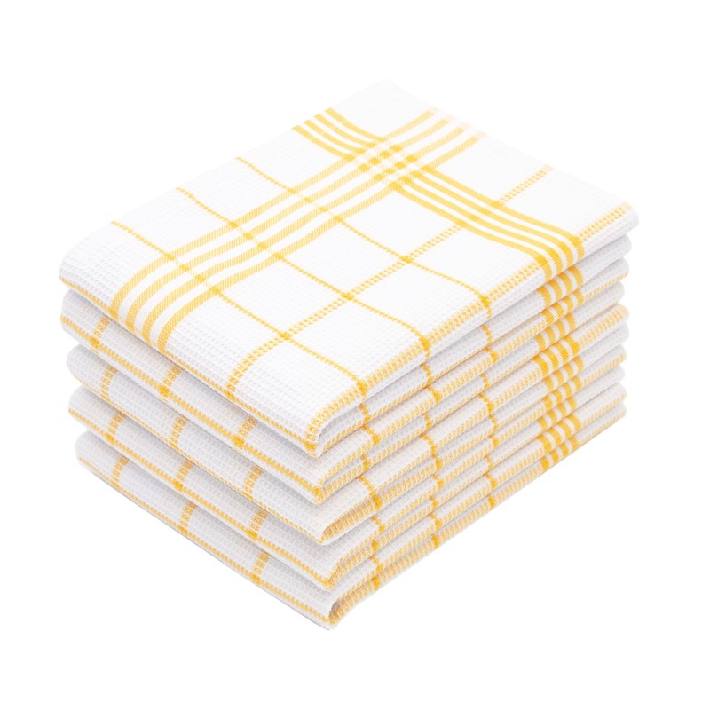 ZOLLNER Set of 5 Tea Towels with Waffle Pattern, Cotton, 50 x 70 cm, Yellow/White Checked