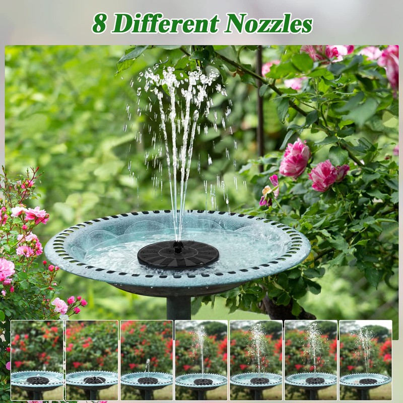 - 8 modos de pulverización: 8 boquillas crean 8 vistas diferentes. Toma corta vívida, flujo vivo hacia arriba o chorro disperso audaz son toda tu elección. Mientras haya agua y sol, esta inteligente bomba solar flotante puede convertir cualquier piscina de agua estancada en un escenario de fuente