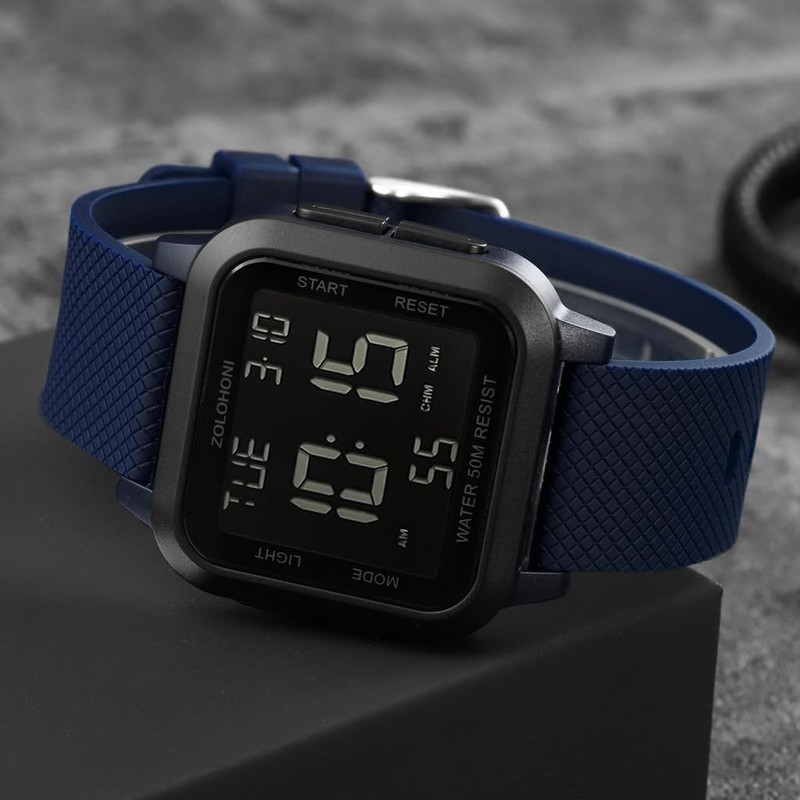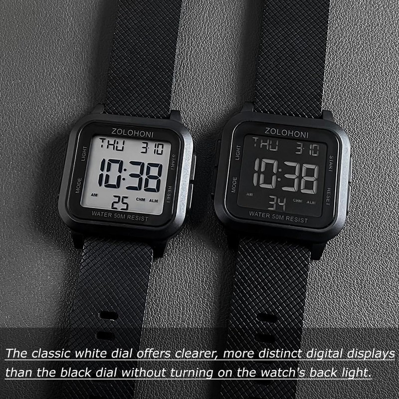 zolohoni Square Men's Digital Watch Big Numbers Dial Large Face Waterproof LED Watches with Alarm Date Stopwatch