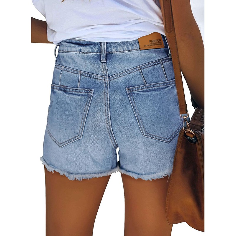 - Design: Women ripped denim shorts,mid rise shorts for women. Stretchy material for cozy wear. Casual fit. This casual denim shorts feature frayed raw hem, button closure, classic pockets and ripped distressed design.