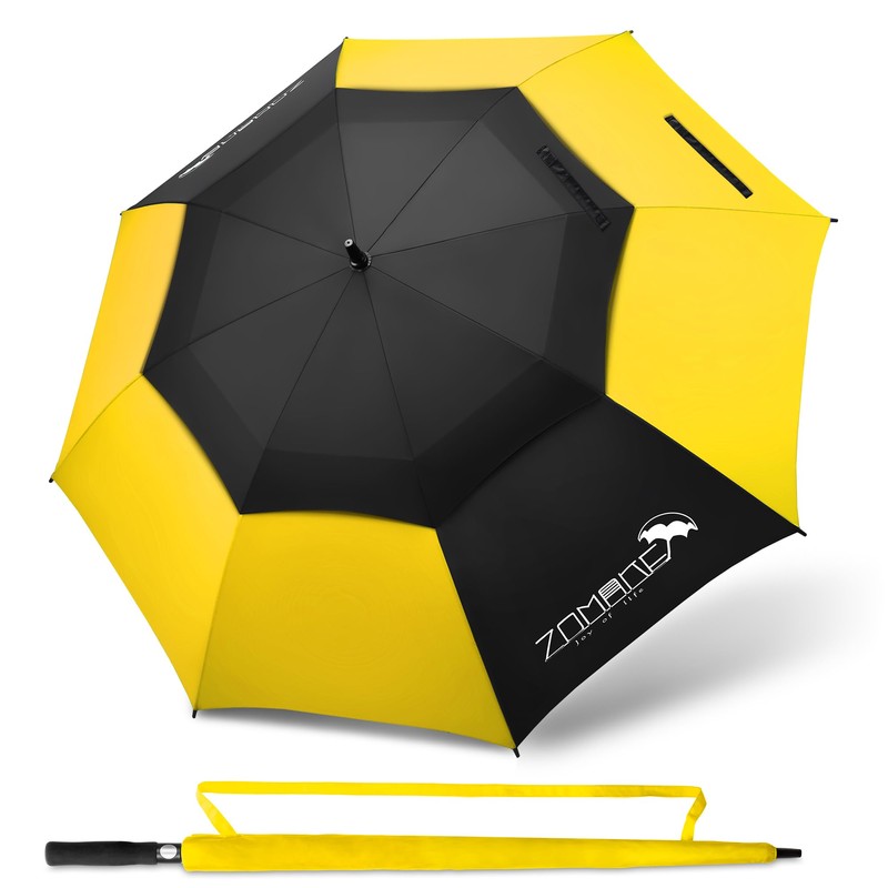 ZOMAKE 68 Inch Golf Umbrella Extra Large Oversized Umbrella Windproof Automatic Open with Golf Big Double Canopy Vented for Rain(Black&Yellow)
