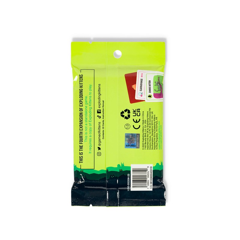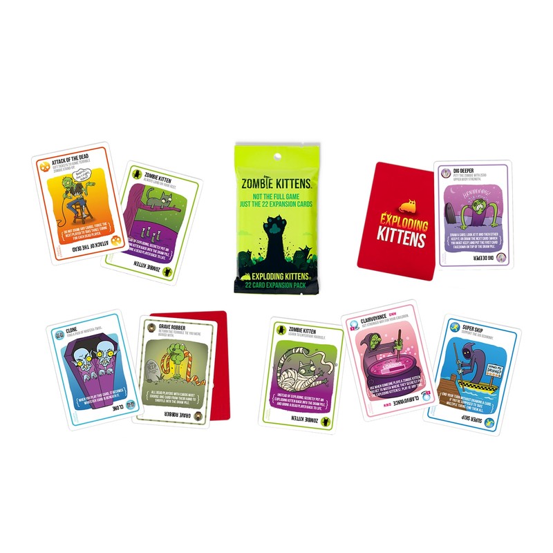 - How to Play: Unleash chaos with the Zombie Kittens expansion! Draw cards, dodge disaster, and watch out for those Exploding Kittens. If you draw one—BOOM! You’re out. But wait… rise from the dead with the Zombie Kitten card and plot your revenge! The last player standing wins in this hilariously intense battle of wits and strategy. (Requires the original Exploding Kittens game to play.)