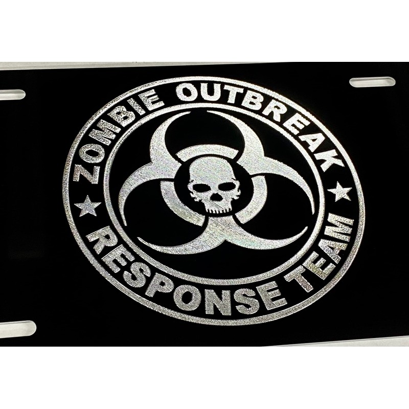 Zombie Response Team 2 Car Tag Diamond Etched on Black Aluminum License Plate