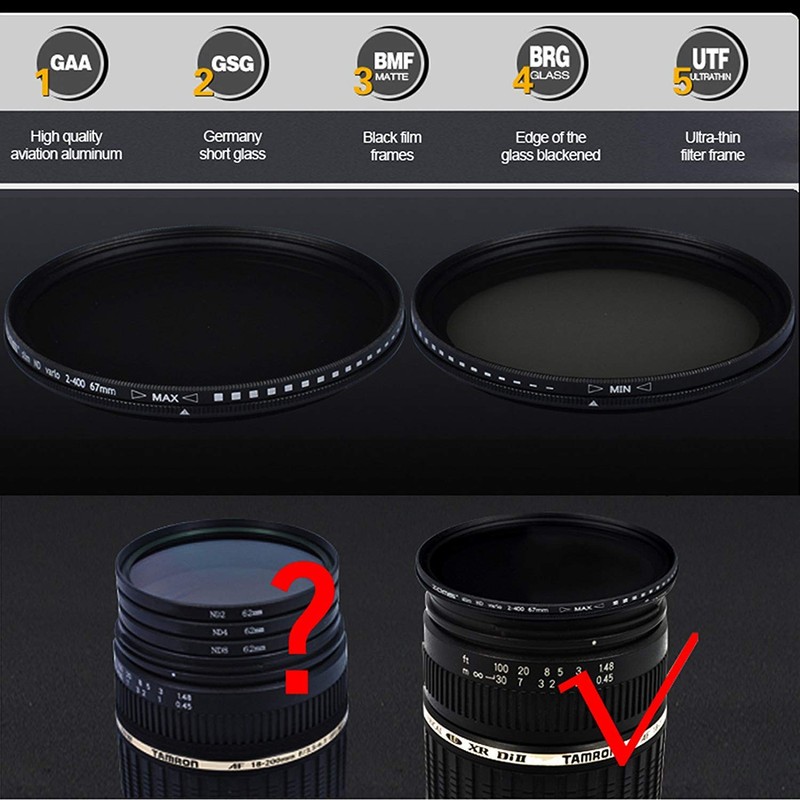 - Rotating Ring to Choose Degree of ND: neutral density can be easily adjusted from ND2 to ND400 by rotating the ring.
