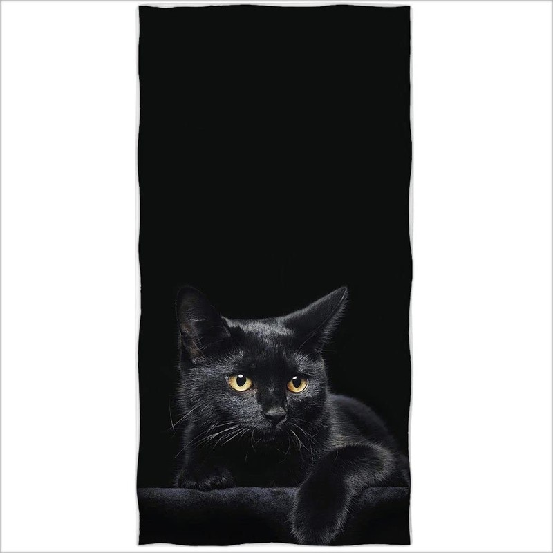 Zomer Beach Towel 70 x 140 cm, Printed Microfibre Bath Towel Black Cat