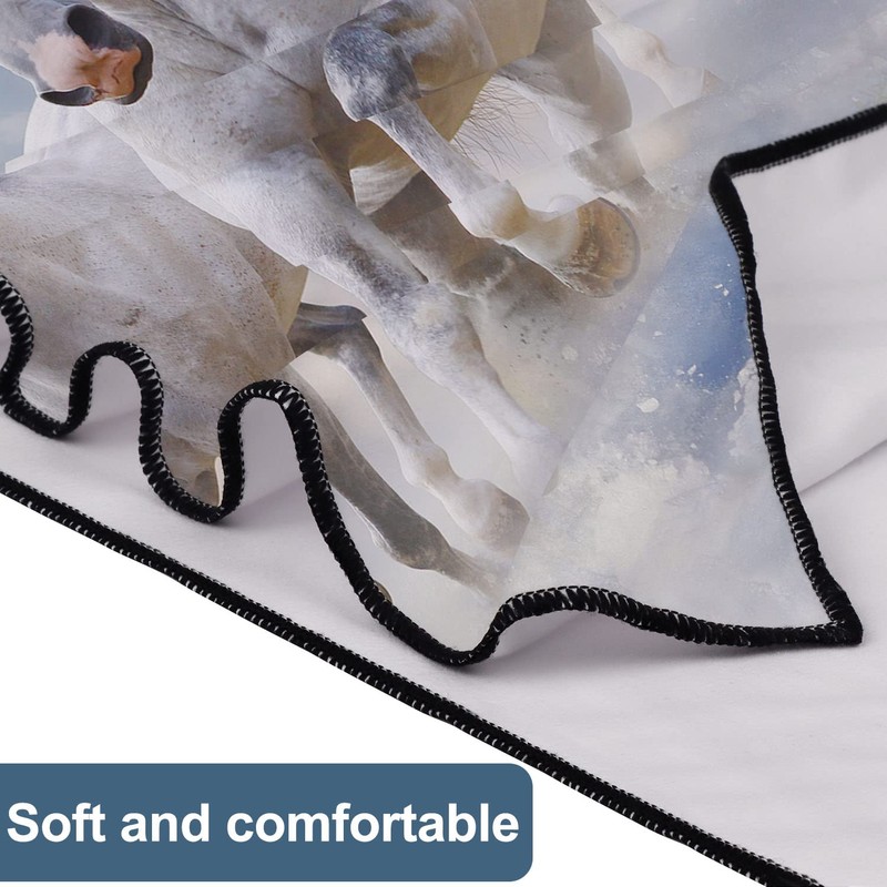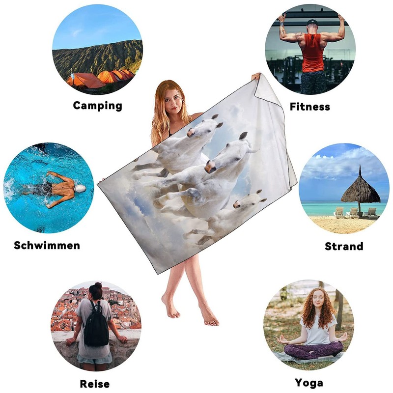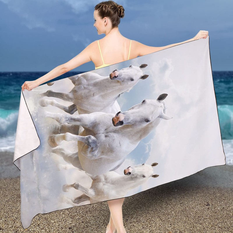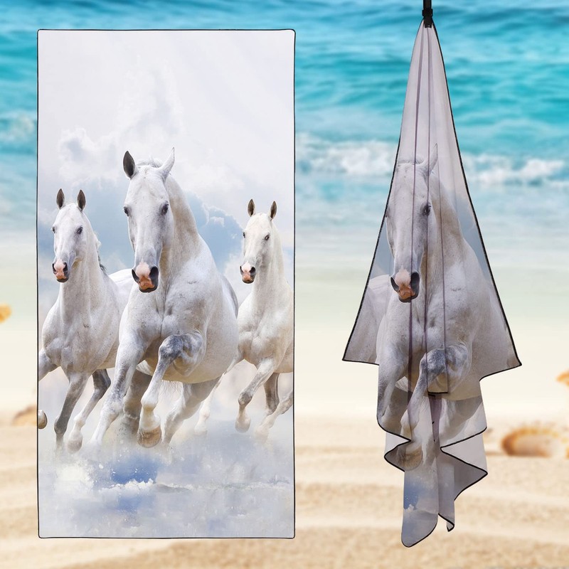 Zomer Beach Towel Large 90 x 180 cm Quick-Drying Microfibre Printed with White Horse Motif
