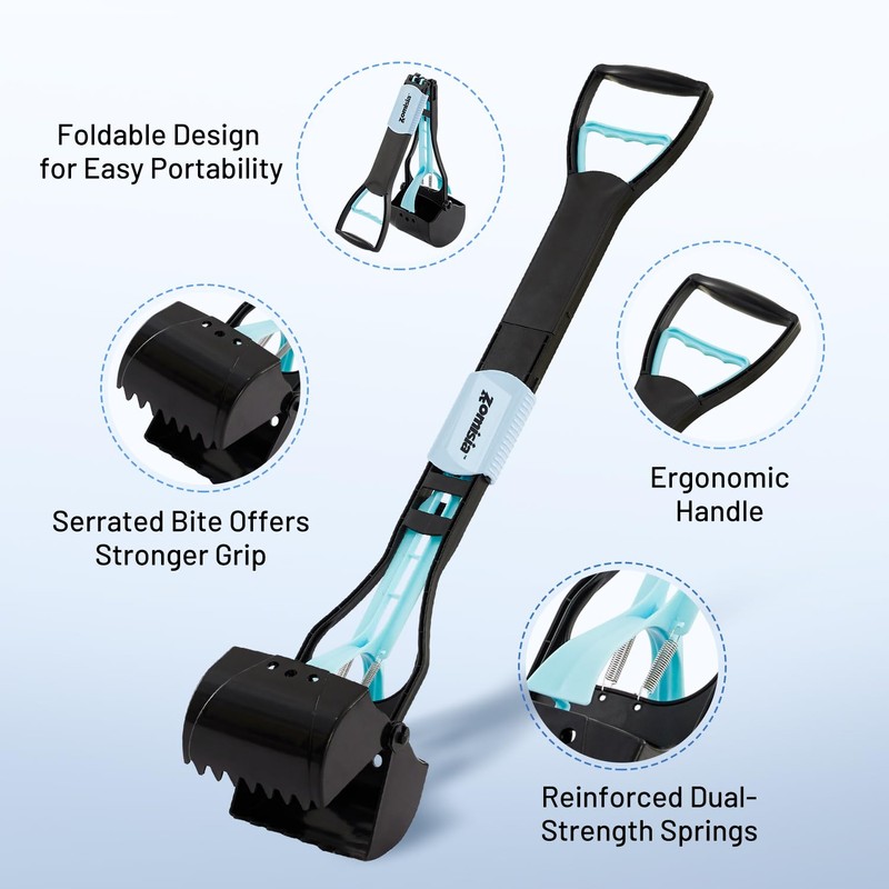 - Portable and Foldable Design: Dog pooper scooper Designed with an ergonomic handle for simple one-handed use. Even while holding your pet’s leash, you can easily complete the cleaning process with a smooth pull-and-lift motion.
