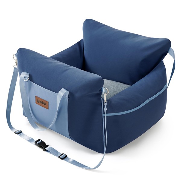 ZOMISIA Dog Car Seat for Small to Medium Dogs - Waterproof Pet Booster Seat for Car with Clip-On Safety Leash, Travel Carrier for Puppy up to 25 lbs, Memory Foam Filling & Adjustable Buckles, Blue