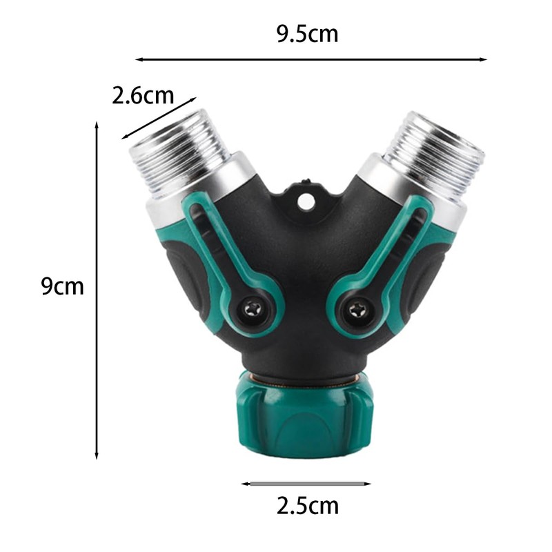 • The Y-shaped hose splitter is meticulously crafted from high-quality zinc alloy and plastic, ensuring durability and resilience. The robust zinc alloy construction provides enhanced wear resistance and can withstand high water pressure, making it a long-lasting solution for your watering needs.
