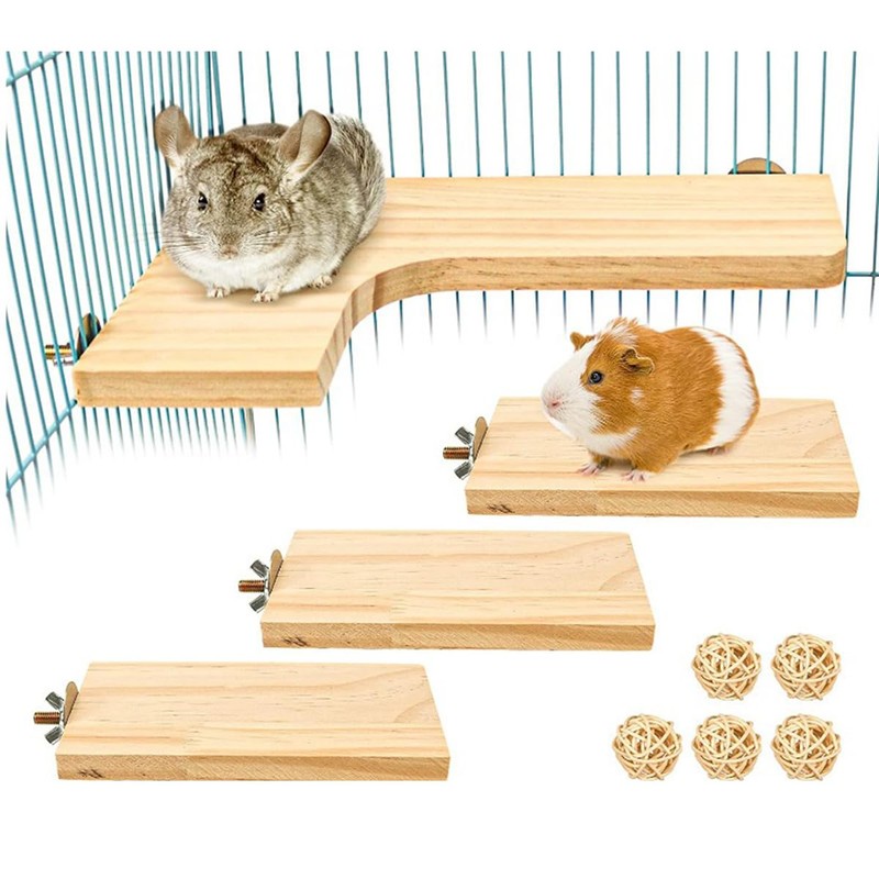 ZONADAH Wooden Hamster Cage Platform Set Hamster Jumping Board Climbing Ladder Bird Perches Parrot Wood Platform for Conure Chinchilla Parakeet Budgie Cockatiel