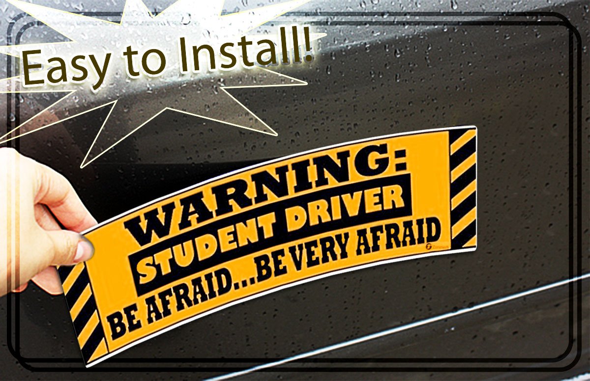 ► Make A simple yet effective way of helping oneself to gain way to the road has been made possible by the use of the Zone Tech "Warning Student Driver" Vehicle Bumper Magnet. The magnet is done in Big Bold Block letter that will remind other drivers to be Cautious on the road. As a result people will be more tolerant to you and give you the space you need. The sticker hints other motorist to stay away from you, thereby Reducing tailgating and bothersome honking.