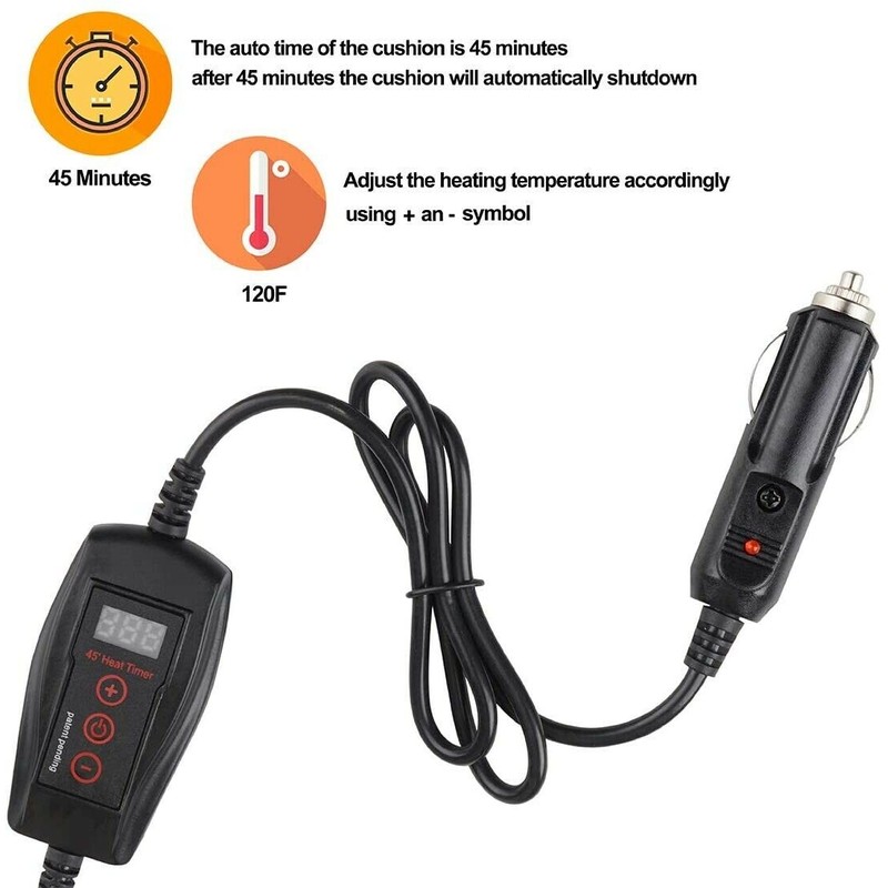 Zone Tech Car Heated Seat Cover with Temperature Control Classic Black 12V Heated cushion