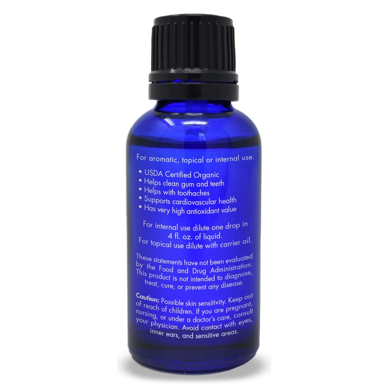 - USDA Certified Organic Clove Essential Oil - Ethically Produced using methods that integrate cultural, biological, and mechanical practices that foster cycling of resources, promote ecological balance, and conserve biodiversity. Naturally Produced without using pesticides, synthetic fertilizers, sewage sludge, irradiation, or genetic engineering.