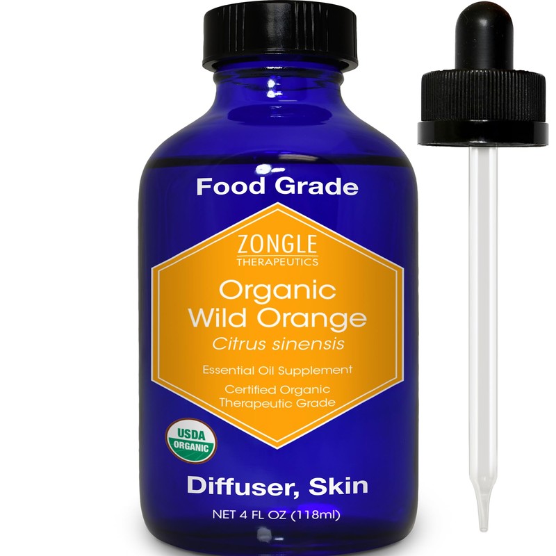 Zongle USDA Certified Wild Orange Essential Oil, Safe To Ingest, Citrus Sinesis, 4OZ by Zongle Therapeutics Store