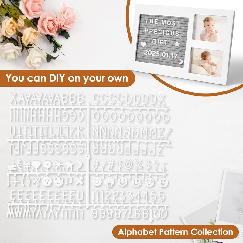 Our photo frames are felted on one side to display photos, and the felt side can be used for DIY text with the alphabet set, and the photo side can be used for ultrasound, weekly photos, or handprints, footprints, and contrasts to show your baby's growth.