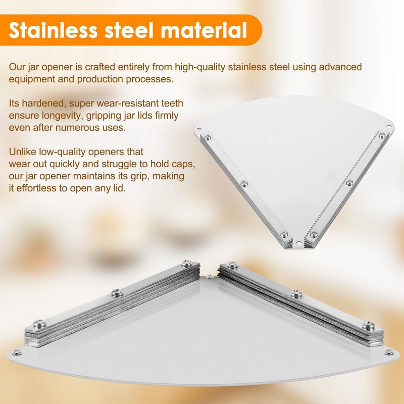 - 【Jar Openers for Arthritis Hands】Jar opener is made entirely of stainless steel, ensuring rust-proof longevity and grip compared to plastic or rubber models. Hardened teeth securely latch onto lids without slipping, even after repeated use. Unlike battery-powered openers, can openers requires no maintenance or replacements