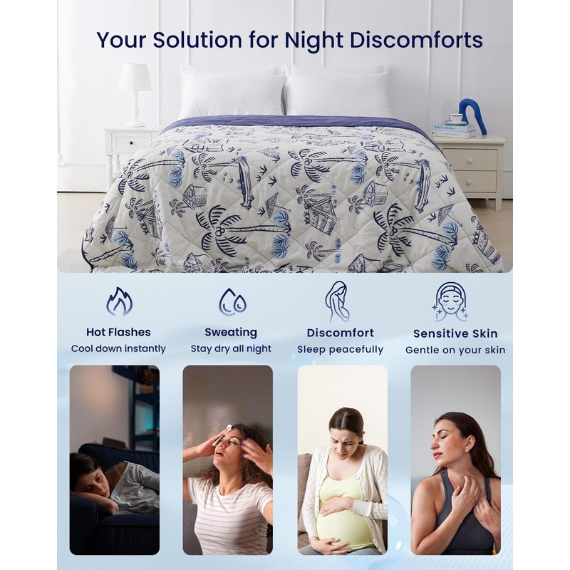 ZonLi Cooling Blankets for Hot Sleepers,All-Season Lightweight Blanket for Night Sweats,Cool Blanket Absorbs Body Heat to Keep Cool,Q-Max 0.45 Summer Blanket for Bed Sofa Couch,Beachside Village