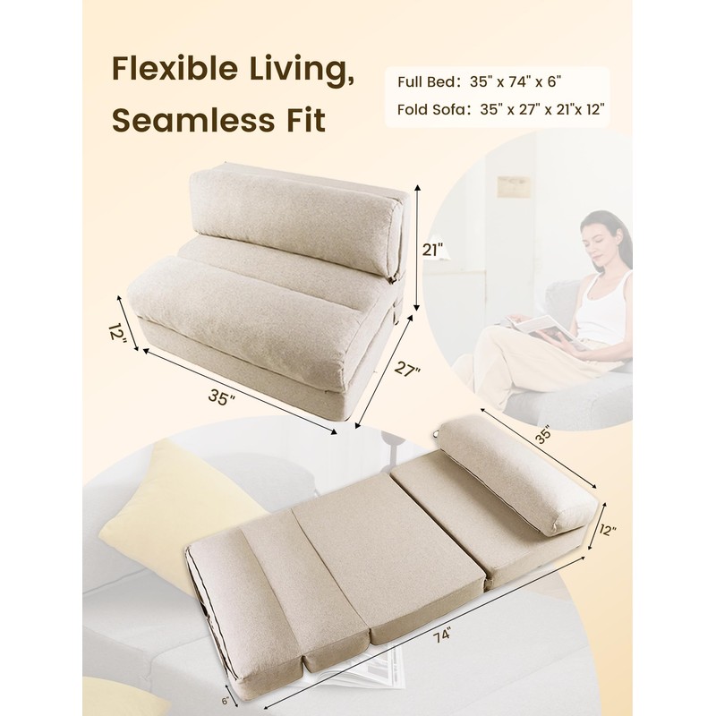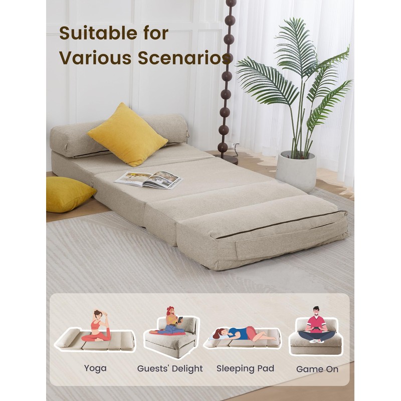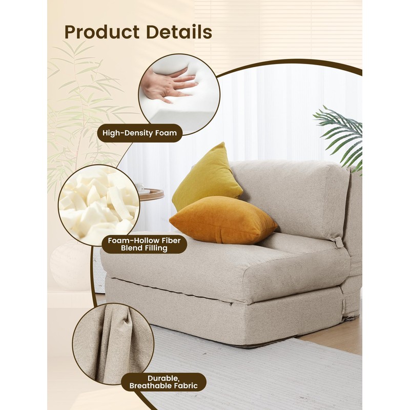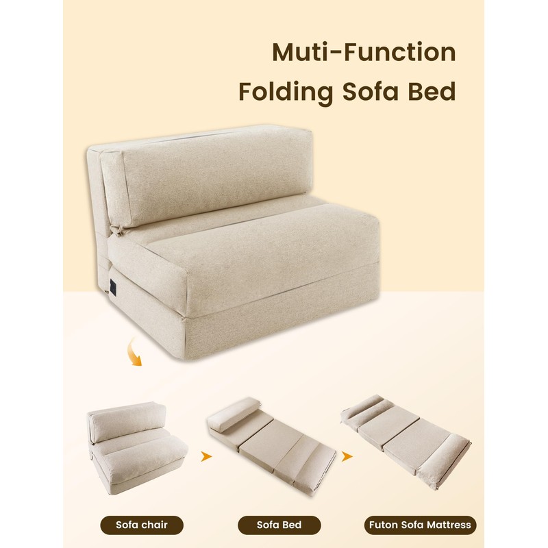 ZonLi Folding Sofa Bed,Convertible Futon Sofa Bed Mattress Sleeper Chair Twin Size,Memory Foam Futon Sofa Couch with Washable Cover,for Living Room,Dorm (Beige, Twin)