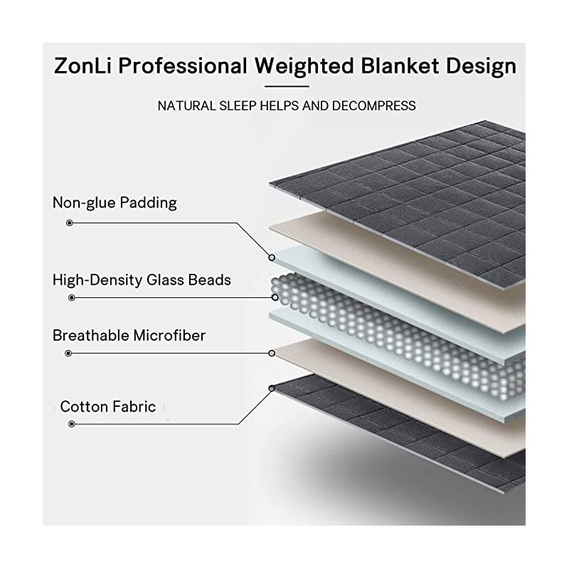 - 【BREATHABLE HEAVY BLANKET】ZonLi heavy blanket makes high-density sewing technology, two-layer microfiber are added to prevent the loose of the thread and leakage of the beads. Unique 7 layer design will firmly keep the beads inside for the best breathability and keep you at the perfect temperature, perfectly adapted to year-round use.