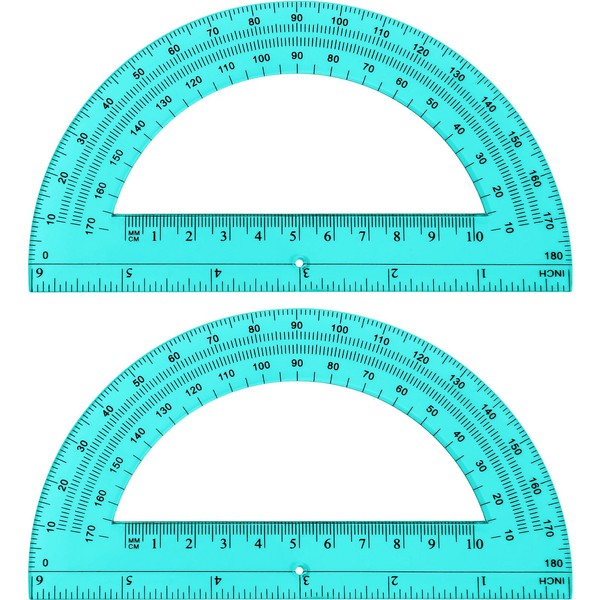Zonon 2 Pcs 6 Inch Plastic Protractor Math Protractors 180 Degrees Angle Measurement, Translucent for Geometry Classroom Kid Student School Office Supplies(Turquoise)