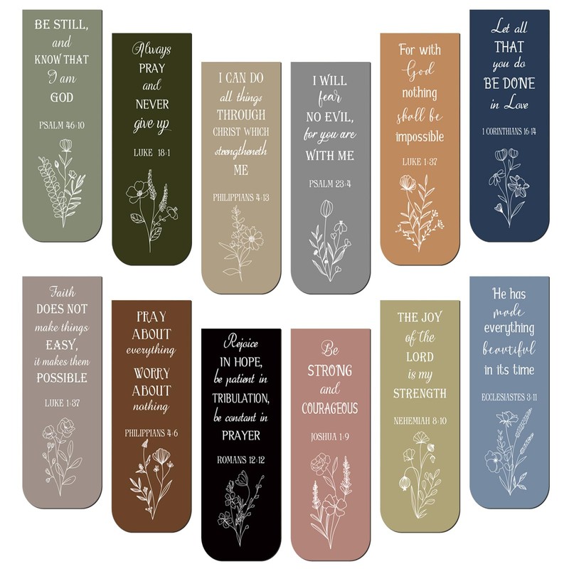 - Motivational Design: 48 pieces bible bookmarks are offered to you, 12 different styles in total, each christian magnet page marker is decorated with flowers pattern, come with inspirational words, bright colors make them cute and beautiful, improve your interests in reading, bring you in a good mood and feel energetic