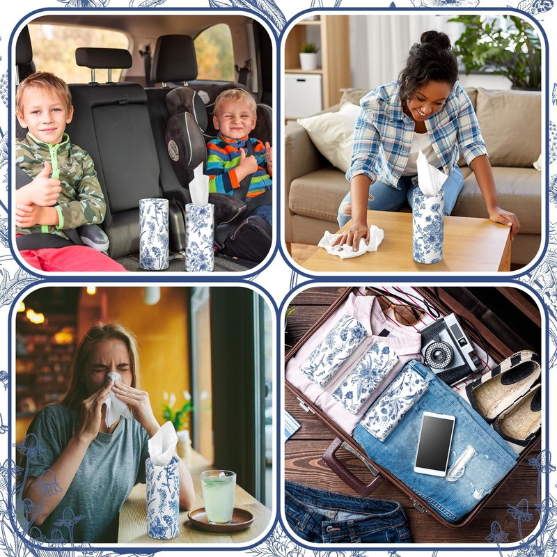 - Vintage Blue Floral Design: our round tissue boxes for car showcase a refreshing and exquisite Vintage design blue floral print; The cylindrical shape combines functionality and aesthetics, making your tissue box strikingly beautiful addition anywhere it is placed