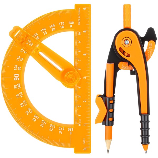 Zonon Student Geometry Math Set Compass and Protractor Set, Drawing Compass and 6 Inch Clear Swing Arm Protractors 180 Degree Math Protractor(Orange)
