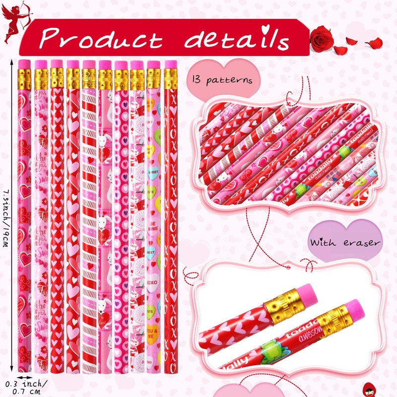 - Sweet and practical design: these wood valentine pencils feature different heart patterns, which is in line with the romantic Valentine's Day vibe; In addition, these Valentine's Day pencils with an eraser can easily eliminate typos, helping you quickly done your work or study