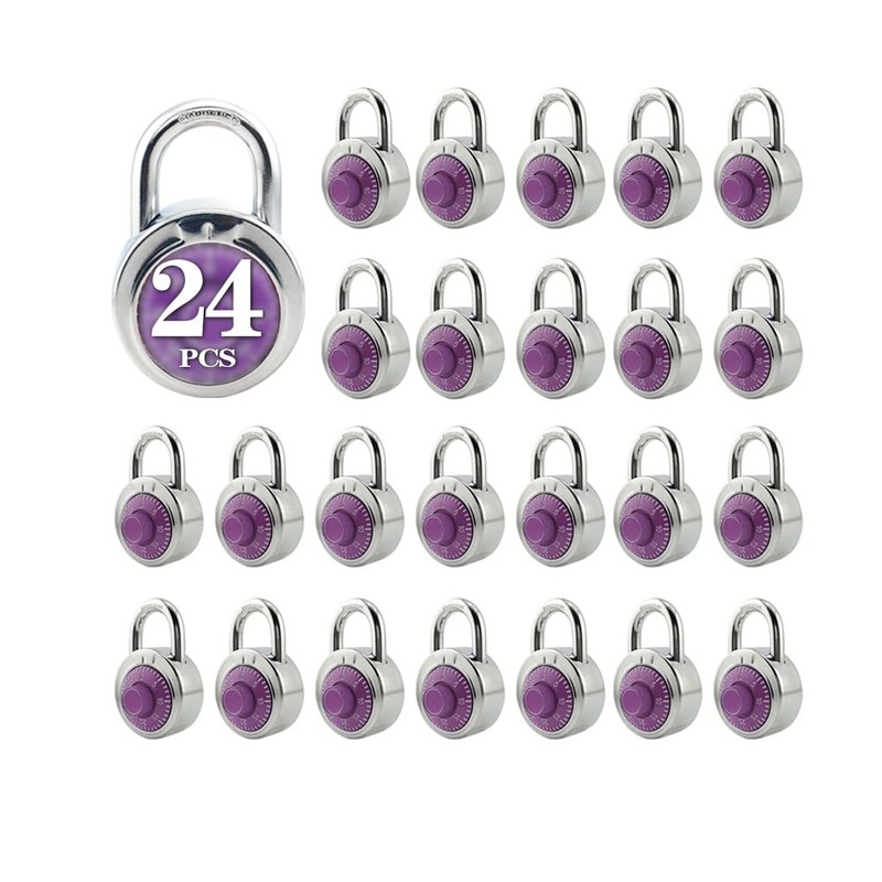 ZonRo Locks Combination Padlock, Fixed Dial Combination Padlock 24 Pack,3 Digit Code Standard Dial Combination, 2 in Wide. 3 in Height,Purple Turntable, Lock for Gym & Locker, School, Toolbox