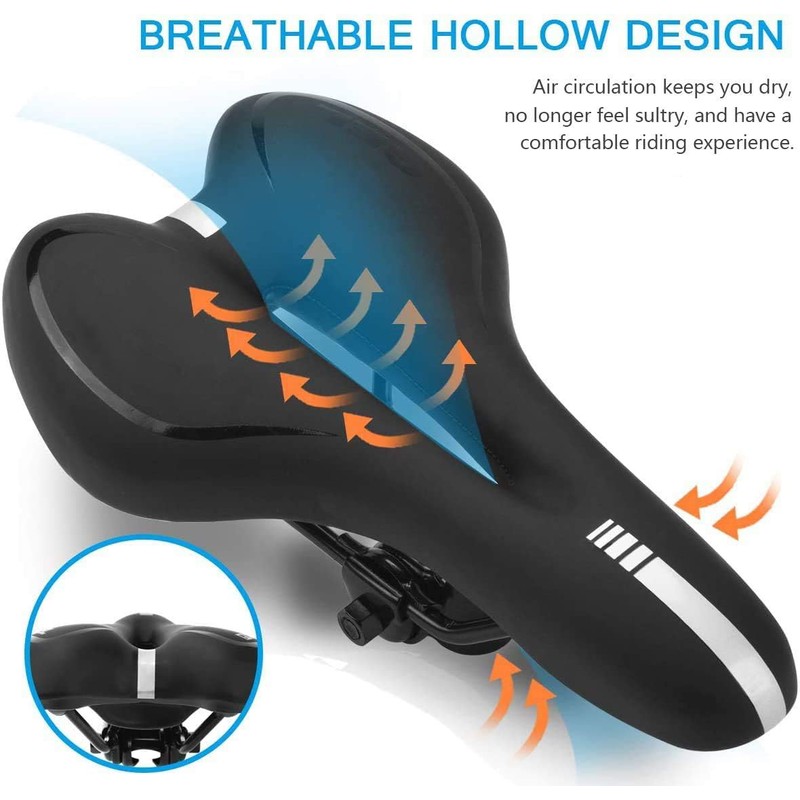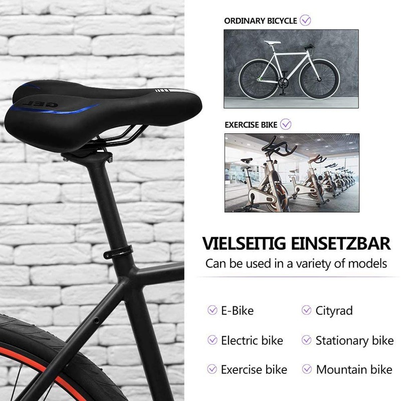 - 🚲【HIGH-DENSITY GEL ,SOFT AND WEAR-RESISTANT】Wear-resistant PU leather surface, scratch-resistant, non-slip,feel comfortable.Padded by high-density gel ,high elasticity,very soft,better protect your butt.Enjoy tour bike ride in comfort and safety.