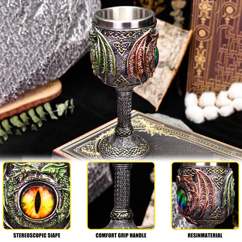 ZONSUSE Dragon Eye Goblet, Medieval Wine Goblet, Gothic Dragon Eyes Goblet, 180 ml (Eyes)