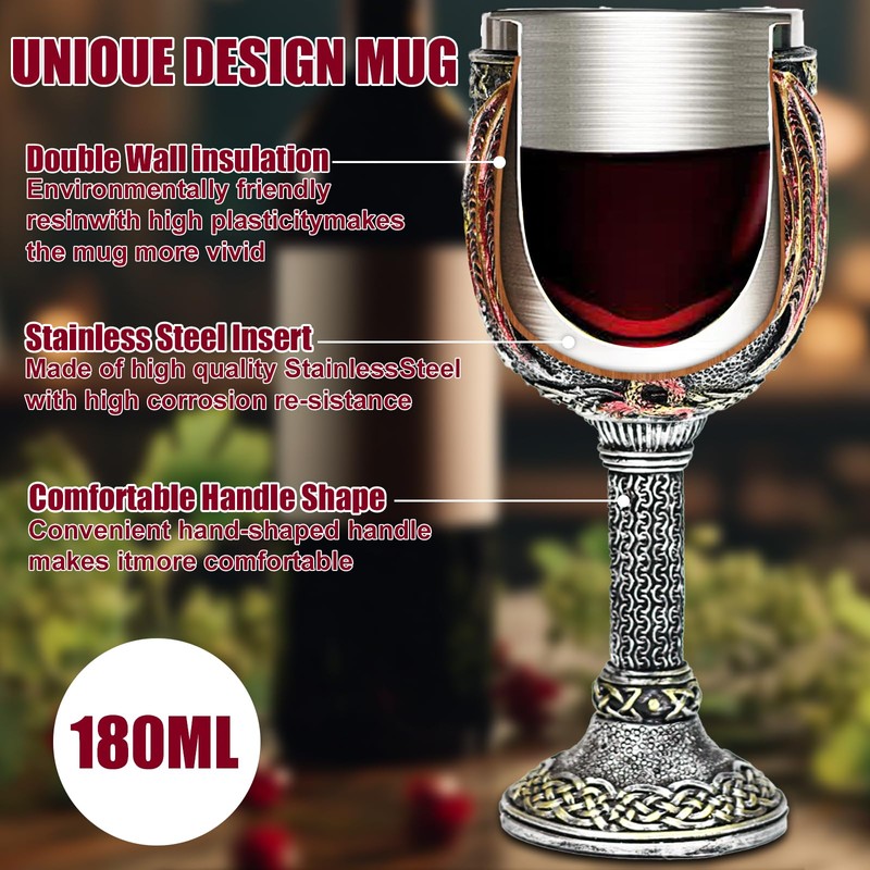 - Personalised gift and gothic decoration: this handmade gothic style goblet is characterised by a unique style and a unique shape with interesting details that will surely impress your loved ones. Perfect for Christmas, Birthdays, Valentine's Day, Father's Day and more. For men and women who love unique culture, it can also be used for Halloween, carnival, parties, birthdays, weddings, bar decorations, medieval markets, etc.