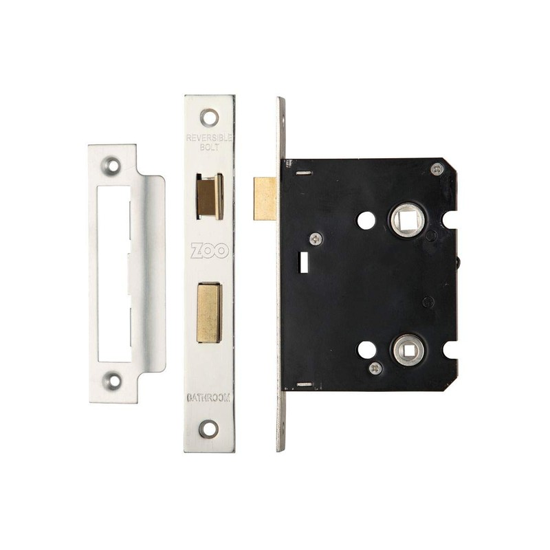 Zoo Hardware 76mm Bathroom Sash Lock, 57mm Backset, Satin Stainless