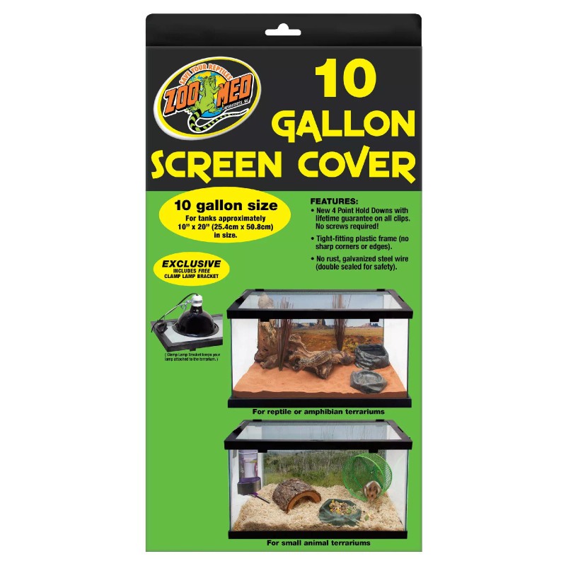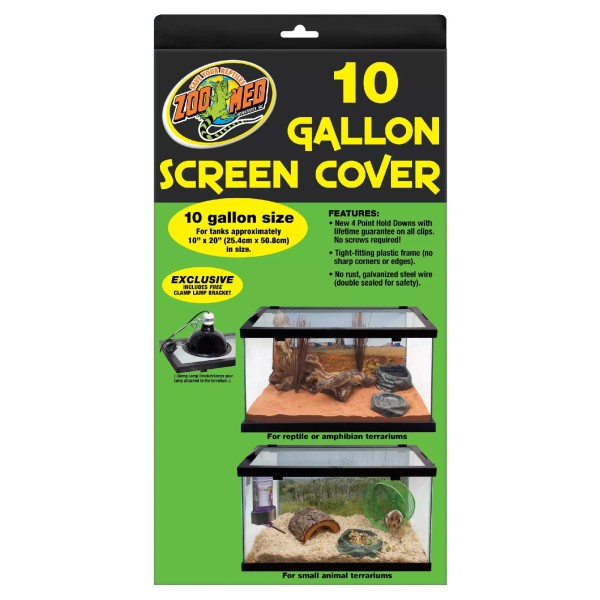 Zoo Meds Screen Covers feature one piece plastic frame construction that clips on tight to prevent loss of valuable pets. Some models have access doors for easy routine maintenance (i.e. feeding crickets, etc.) No rust galvanized steel wire, double sealed for safety. Exclusive NEW Clamp Lamp Bracket allows you to secure a clamp lamp to the top of your screen!