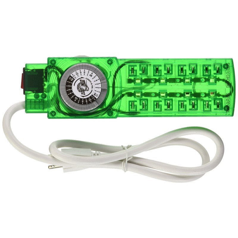Programmable Timer and Power Strip in One. 24 hour programmable lighting timer. Provides a natural day/night cycle for your reptile. Includes 8 grounded outlets: 4 timer controlled outlets. 4 continuous power outlets. Grounded 3 prong receptacle for safety. Easy-To-Program analog design.