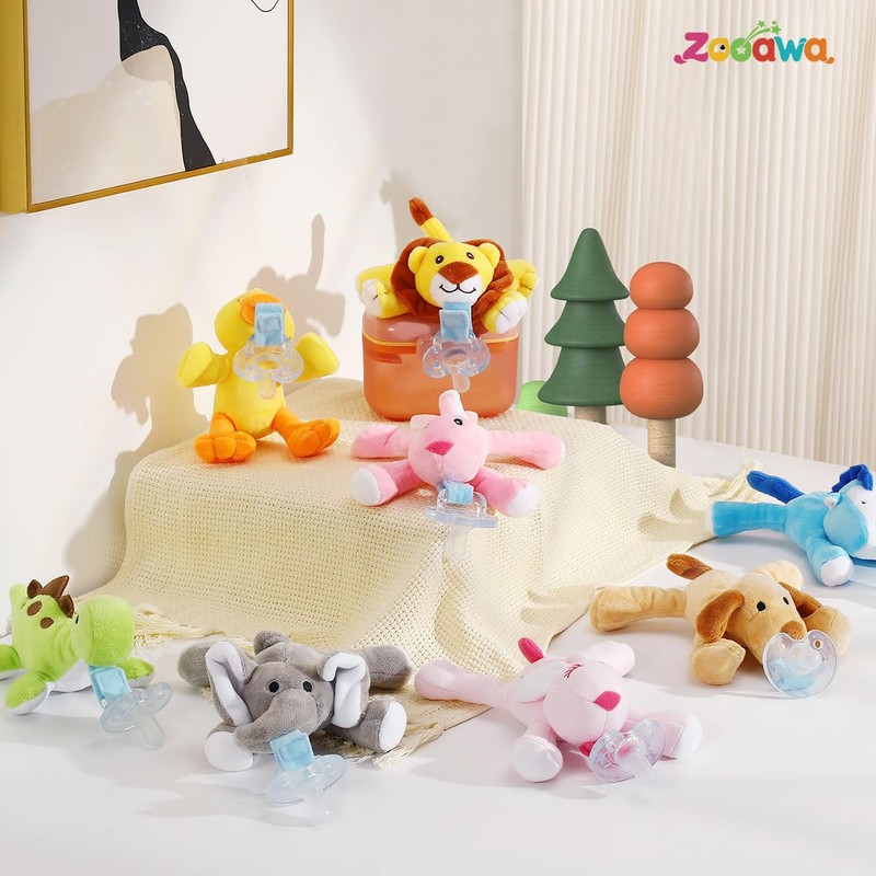 - The cute soft plush stuffed animal dummy toy attracts the baby's attention and helps to exercise the baby to grasp things. The soother holder teddy is very effective in promoting the baby's physical and emotional development.