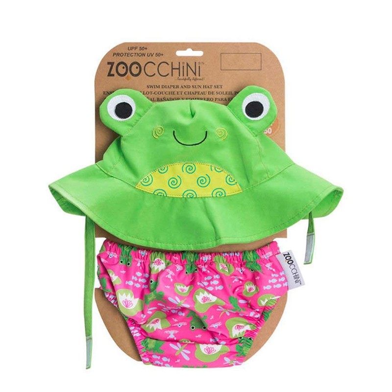- Swimwear Zoocchini are lined on the inside a soft and have the adjustable bindings on belt ensures a comfortable fit. Relating to the bathing costume, the hat, designed to provide all day protection from the sun (UPF 50 +). Chlorine and salt water resistant. Microfibre, dries quickly.