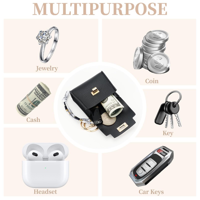 - Multiple Uses:This small keychain pouch purse can be used to hold cash, coins, jewelry, keys, headset,or any small items you want to take out. You can use this coin purse as a portable mini headset bag, keychain wallet or bag decoration. You no longer need to carry a heavy wallet, it will be your best choice for going out, partying and traveling.