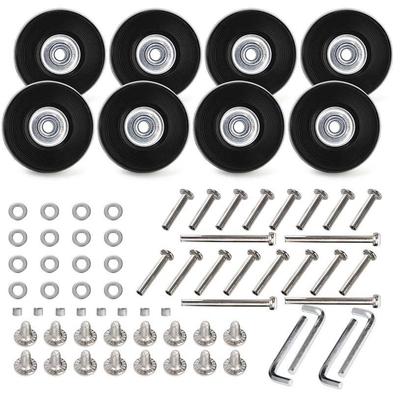 - Easy Operation: The luggage wheels replacement kit is designed for hassle-free installation. Use a hacksaw to cut off the pole which connects the original wheels, then Install the new wheel with the included accessories.