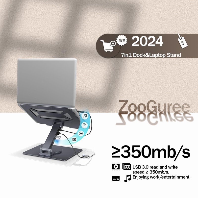 ZooGuree 7 in 1 Laptop Docking Station Stand Detachable USB C Hub, 4K HDMI, 2 USB 3.0, RJ45, PD 3.0 Universal Laptop Stand with 360-degree Swivel Stand