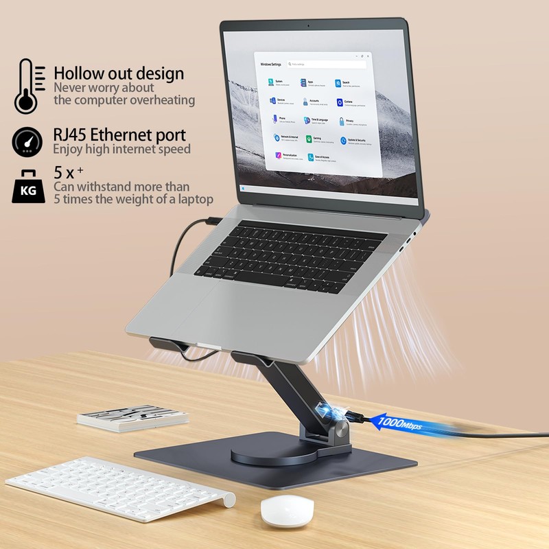 ZooGuree 7 in 1 Laptop Docking Station Stand Detachable USB C Hub, 4K HDMI, 2 USB 3.0, RJ45, PD 3.0 Universal Laptop Stand with 360-degree Swivel Stand