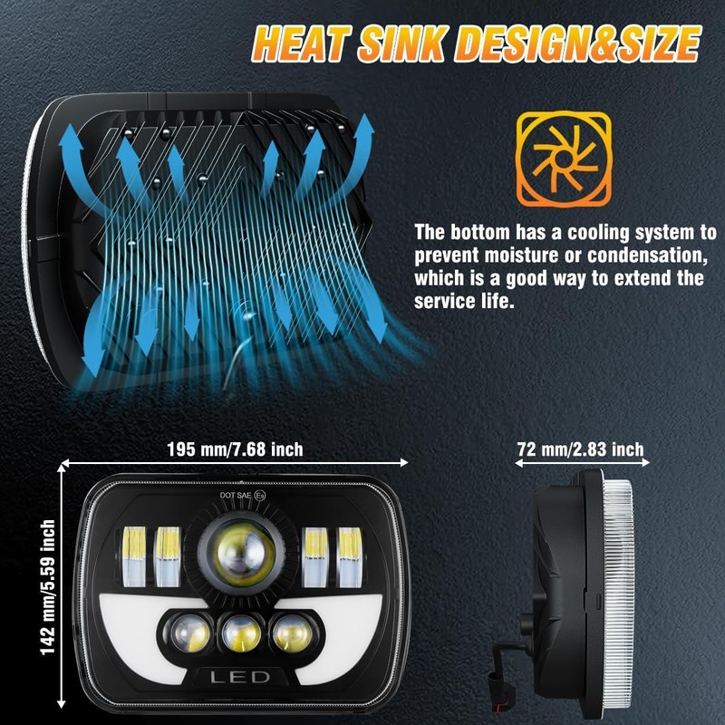 - 【IP68 Waterproof】The 5x7 6x7 headlights are waterproof enough to give you a bright and clear driving view and can quickly identify potential obstacles. In addition, the fuselage made of high-quality materials, with excellent sealing edges, can play extremely excellent and stable performance even in cold winter or muddy mountain roads or hazy dust, to provide better visibility and safety. Rugged and durable to reduce frequent replacement.